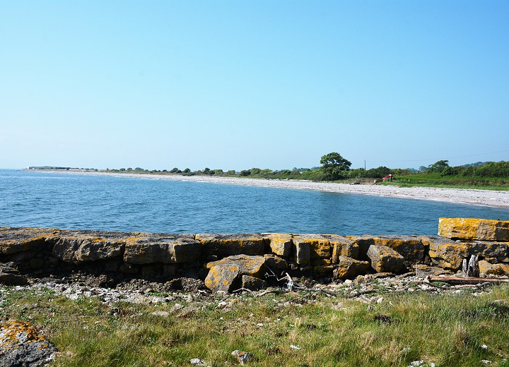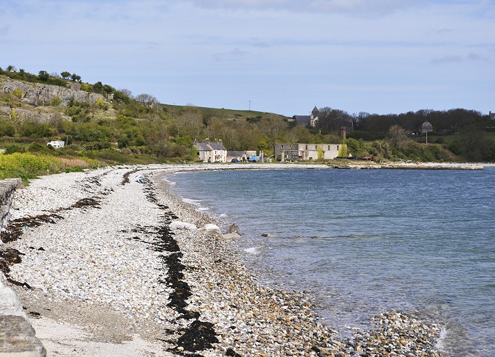 At the far end of the beach the remains of the now disused Penmon limestone quarry can be seen, the stone from this was used to build the Menai Suspension bridge and seafront properties in Beaumaris.